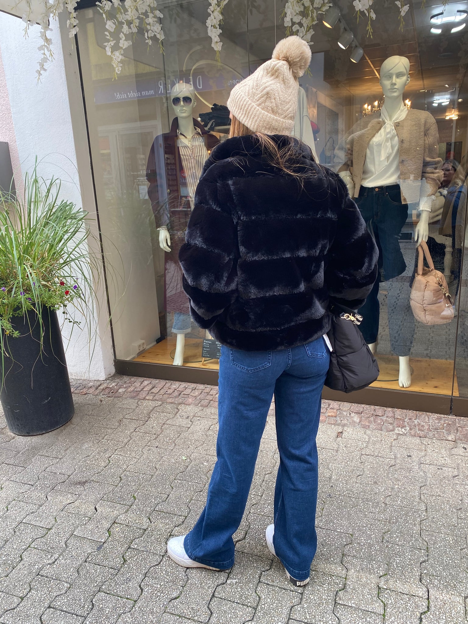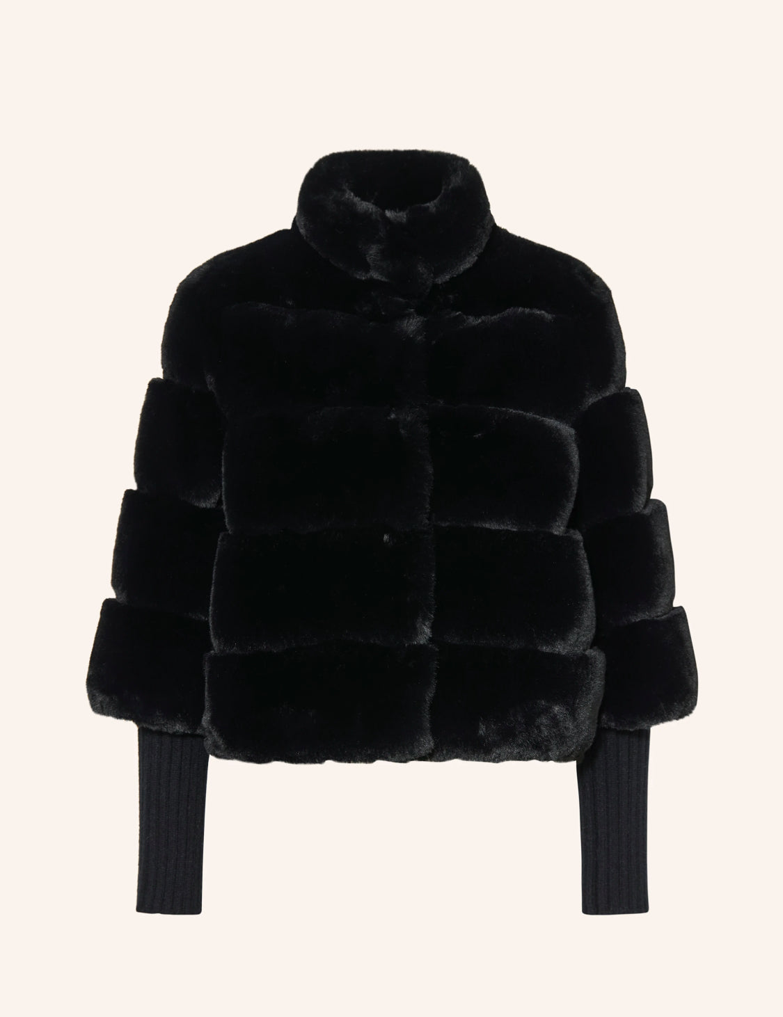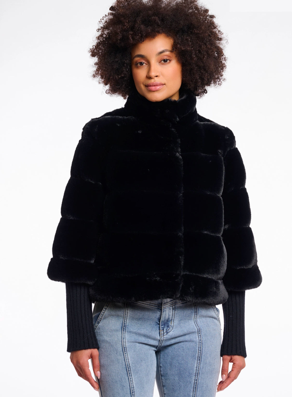 Rino & Pelle Feline col. Schwarz, Faux fur jacket with knitted sleeves