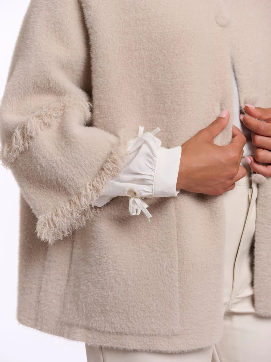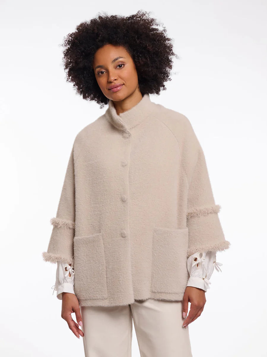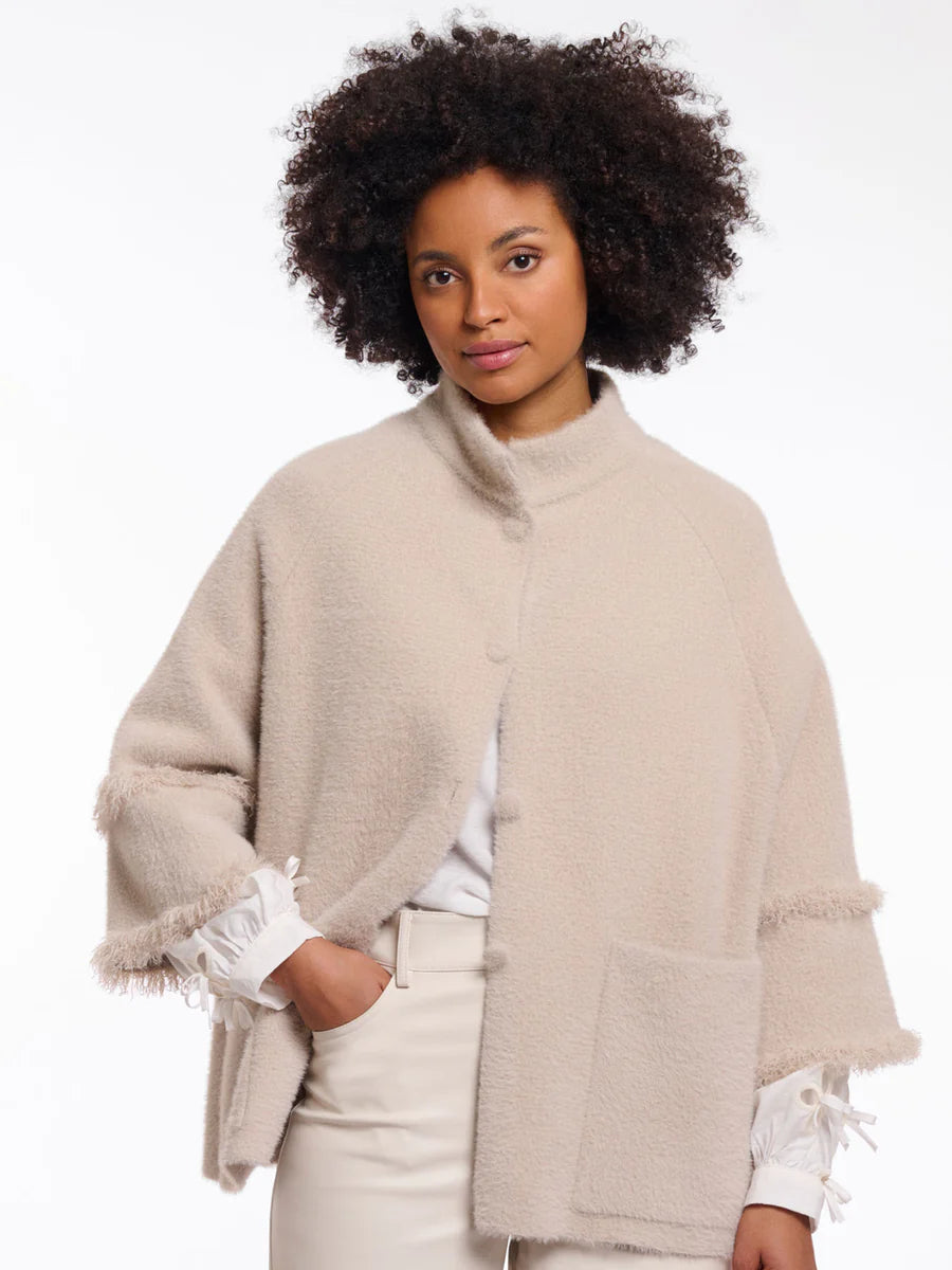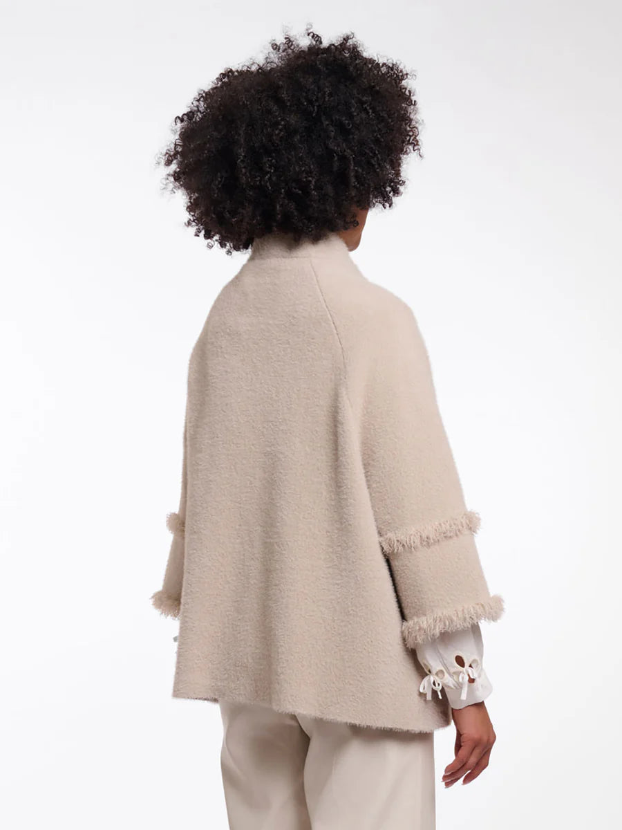 Rino & Pelle Sabe Cape with fringe detail col. Stone