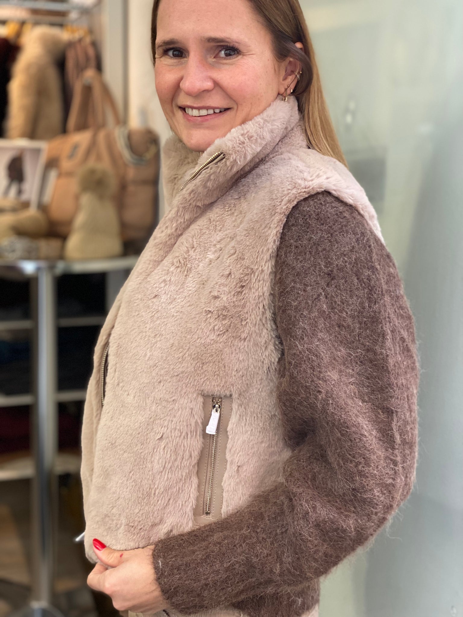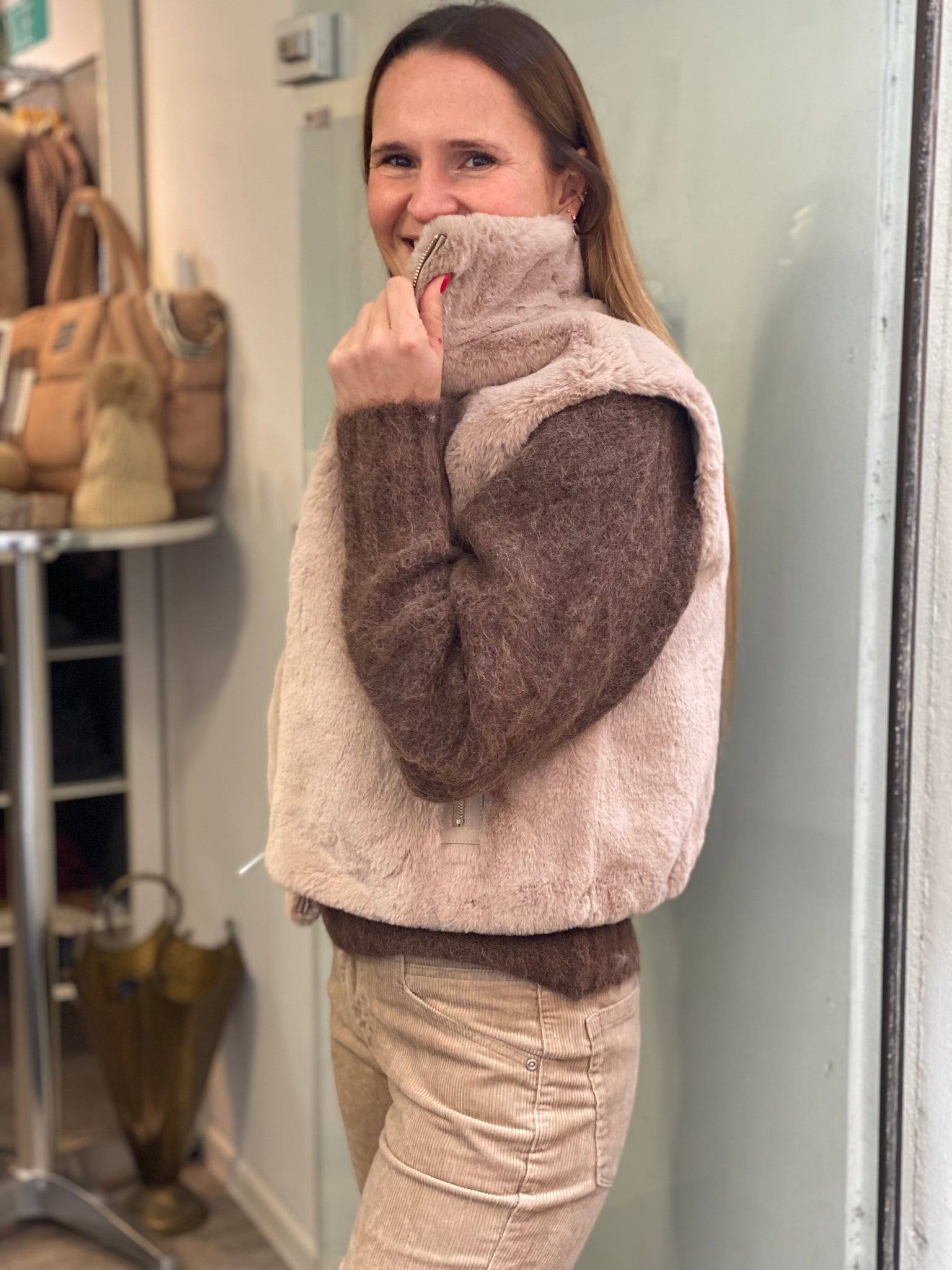 Diese kurze Weste aus softem Kunstfell ist das perfekte Fashion‑Highlight für Deine Übergangs‑ oder Wintersaison. Die samtige Oberfläche und der luxuriöse Faux‑Fur‑Look verleihen Deinem Outfit sofort einen edlen Touch – ganz ohne tierische Materialien.